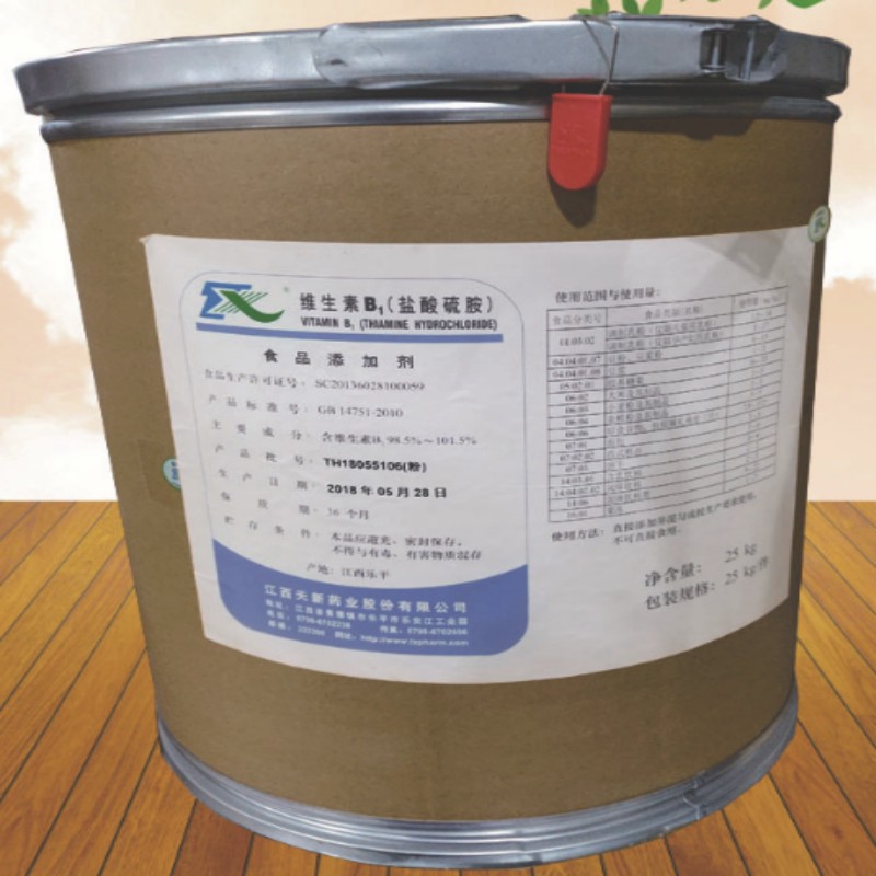 【维生素B1用途】营养增补剂;可添加于白米、小麦粉、面包、苗条、酱油、乳制品、人造奶油、糕点、清凉饮料、果酱,健康营养品,婴幼儿食品,固体饮料,乳制品,方便食品,膨化食品,调味品,中老年食品,烘焙食品,休闲食品,冷食冷饮等。
